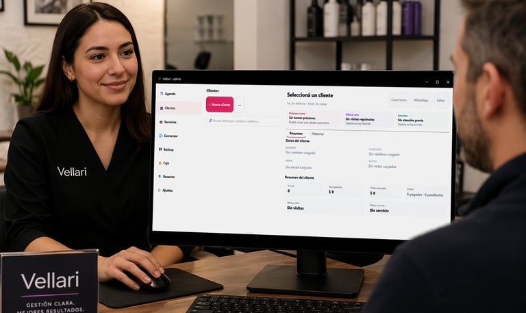 Vellari es un software pensado para organizar turnos, clientes, servicios y la gestión diaria de tu negocio en un solo lugar.